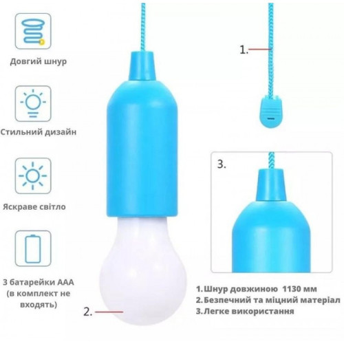 Лампа на шнурке – это отличный способ быстро осветить необходимый участок в помещении или на улице. Также может использоваться в качестве ночника, или для декорирования интерьера. Лампа оснащена длинным шнурком, что позволяет закреплять её на удобной высоте.