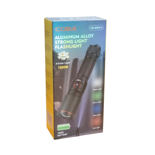 необходимую гибкость в различных ситуациях.Преимущества:• Мощный свет для отличной видимости.• 4 режима работы:1-й режим - белый2-й режим - зелёный3-й режим - синий4-й режим - красный.• Прочный и ударостойкий корпус.• Легкий и компактный – удобно носить с собой.• Удобная зарядка через USB.Характеристики:• Тип товара: фонарь аккумуляторный / ручной фонарь /
