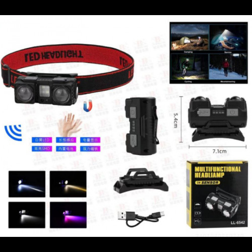 • Аккумуляторный налобный фонарь с датчиком движения LL-6542