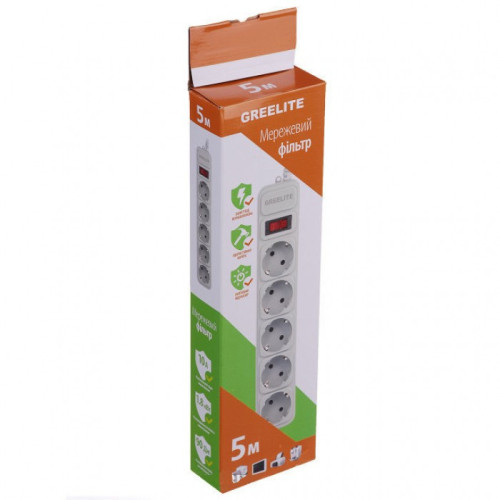 Удлинитель - Cетевой фильтр Greelite на 5 розеток 5 метров кабель