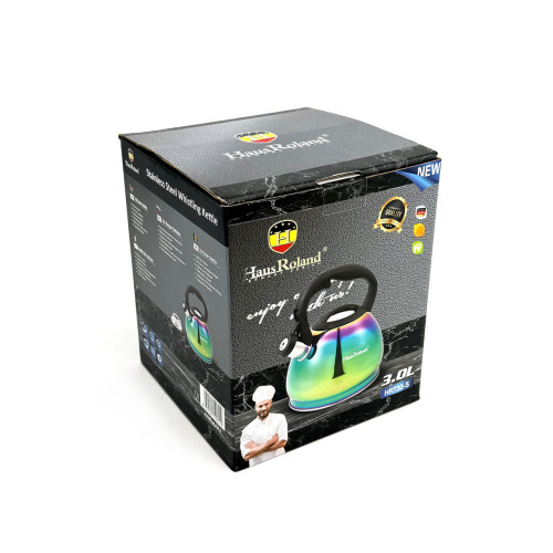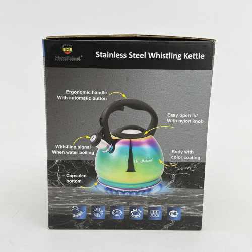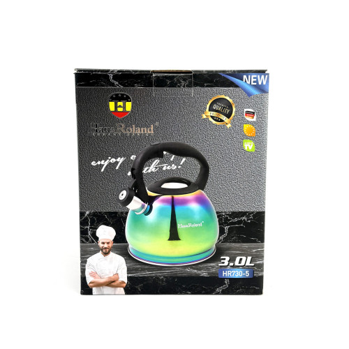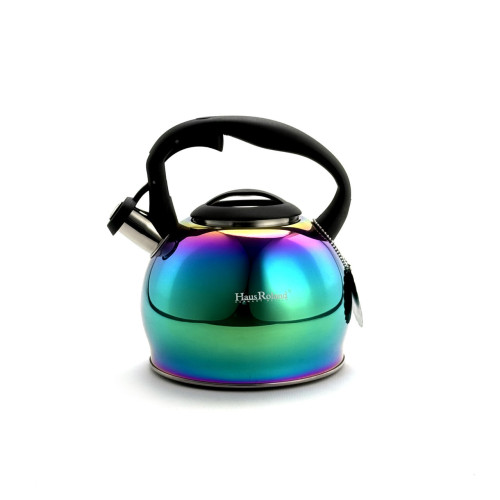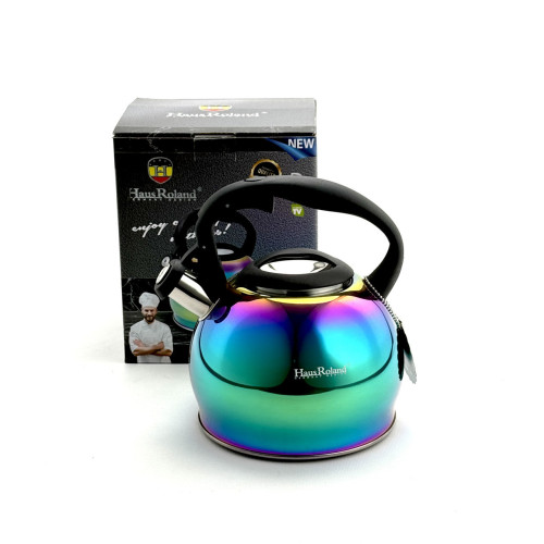 Чайник Haus Roland HR730-5 — это не просто посуда, а настоящий арт-объект для вашей кухни. Его корпус из нержавеющей стали 201 украшен специальным гальваническим покрытием, создающим потрясающий эффект "хамелеон". Модель оснащена трехслойным капсульным дном (алюминий-железо-алюминий), которое гарантирует быстрый нагрев, равномерное распределение тепла и совместимость со всеми варочными поверхностями, включая индукционные. Ручка и крышка из термостойкого нейлона обеспечивают безопасное использование, а удобная кнопка на ручке позволяет легко открывать носик одной рукой. Громкий свисток не даст вам пропустить момент закипания воды.