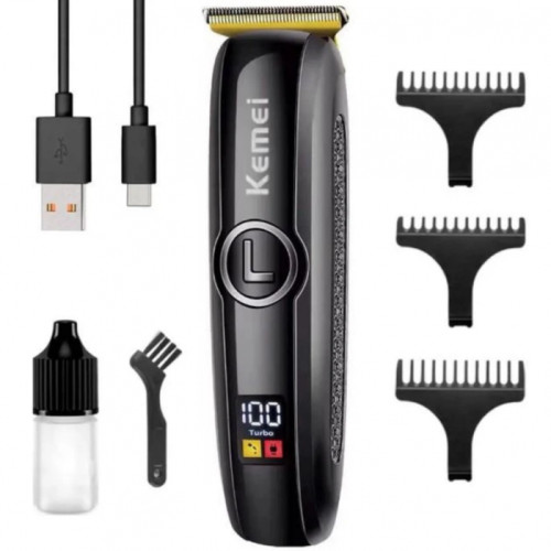 Аккумуляторная машинка триммер для стрижки с дисплеем Kemei KM-5072 с 3 насадками (1,2,3 мм)