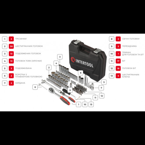 Набор инструментов 1/2" & 1/4" 110 ед. INTERTOOL ET-9108