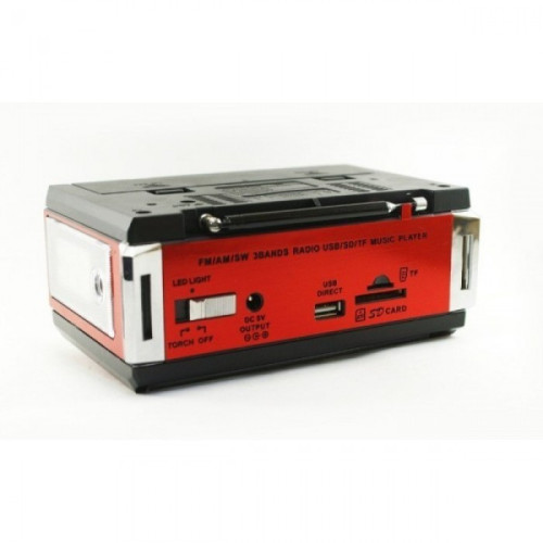 На боковой стороне радиоприемник находится переключатель, который позволят воспроизвести радио в частотах AM, SW, FM или переключить воспроизведение музыки на разъемы USB или SD.