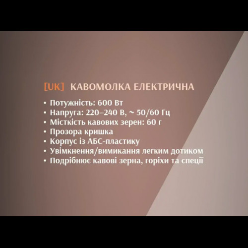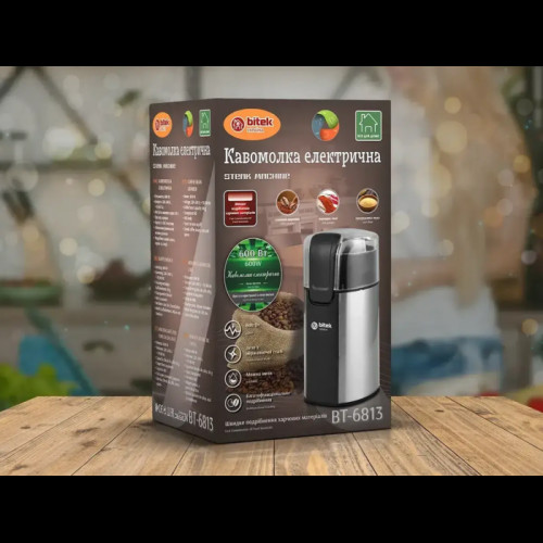 Электрическая кофемолка Bitek BT-6813 600 Вт имеет острые ножи и обеспечивает быстрый и равномерный помол. Подходит для кофейных