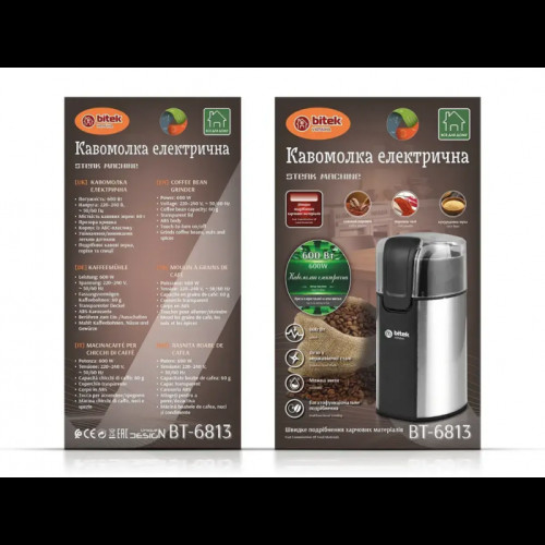 зёрен, специй и орехов.Bitek BT-6813 предлагает вам свою кофемолку - электрический