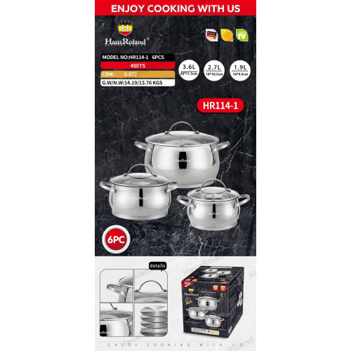 Набор кастрюль Haus Roland HR114-1, 3 шт из нержавеющей стали 1,9/2,7/3,6 л. Серебристый (HR114-1)