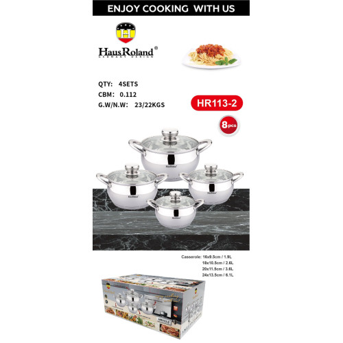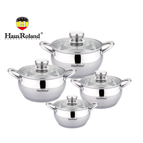 Набор Haus Roland HR113-2 создан для тех, кто ценит долговечность, минималистичный дизайн и функциональность. Выполненный из высококачественной нержавеющей стали 201, он демонстрирует строгую элегантность благодаря сплошной зеркальной полировке. Ключевая особенность этого набора — цельнолитые ручки, которые обеспечивают максимально надежный хват и подчеркивают профессиональный стиль посуды. Прозрачные крышки из закаленного стекла позволяют наблюдать за процессом приготовления, не теряя тепло и аромат блюда. Для вашего удобства на внутренней стенке каждой кастрюли нанесена мерная шкала, позволяющая точно отмерять количество жидкости без использования дополнительной посуды.