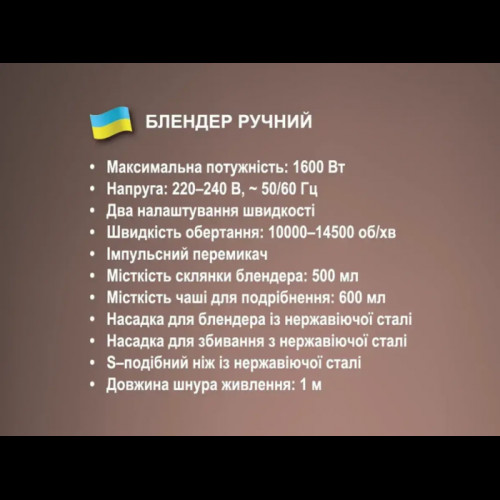 Устройство оснащено двойным ножом из высококачественной нержавеющей стали, который обеспечивает равномерное измельчение продуктов. Блендер также имеет механическое управление и импульсный режим для более точного контроля процесса измельчения.