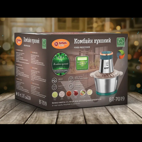 Электрический блендер-измельчитель Bitek BT-7019 - это мощный и функциональный кухонный прибор, который станет незаменимым помощником в приготовлении различных блюд.