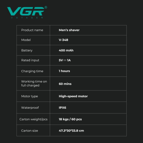 Универсальная компактная аккумуляторная электробритва VGR V-348 с роторной системой бритья предназначена для
