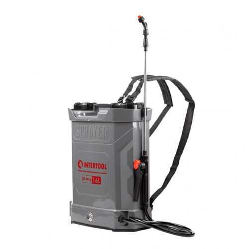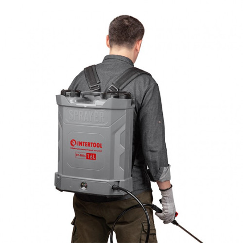 Опрыскиватель аккумуляторный ранцевой 16 л, 3.1 л/мин, батарея 12 В/8 Аг INTERTOOL DT-9016