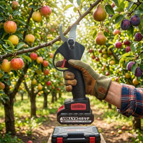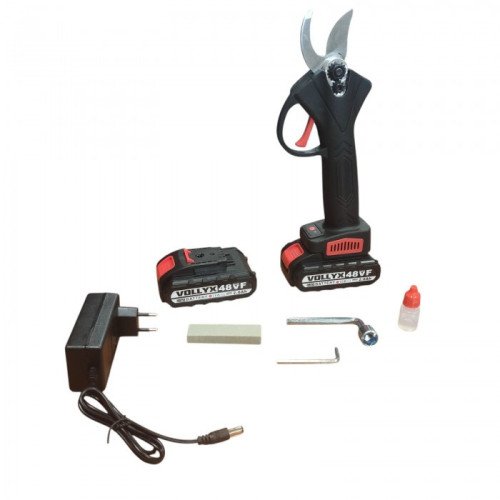 Садовые ножницы с острыми и надежными лезвиями из высококачественной стали обеспечивают аккуратный и чистый срез, не повреждая растения.Достоинства:Тихая работаЭргономичная рукоятка для удобного увлеченияБыстрый и легкий срезДолгое время работы от одного зарядаПростота в использованииОписание:Аккумуляторный секатор – это современный инструмент, предназначенный для упрощения ухода за садом и обрезки растений. Этот садовый секатор оснащен мощным и долговечным литий-ионным аккумулятором, что гарантирует длительную работу без частой подзарядки.Аккумуляторный секатор справляется с разнообразными задачами в саду, включая обрезку кустарников, деревьев, живых изгородей и даже газонов. Высокое напряжение обеспечивает мощный и стабильный поток энергии для быстрой и эффективной обрезки растений.Характеристики:Тип: сучкорезВремя зарядки: 1,5 часаВремя работы: 2-2,5 часаМаксимальная резка: 30 ммНапряжение зарядки: 110-220 ВАккумулятор: 48VТип аккумулятора: Li-ion Цвет корпуса: черныйКомплектация:Секатор садовыйЛитиевая батарея 2 шт (48V) 2.0 AhИнструмент для гаечного ключа 2 штЗарядный адаптер Ёмкость под маслоТочильный камень Кейс