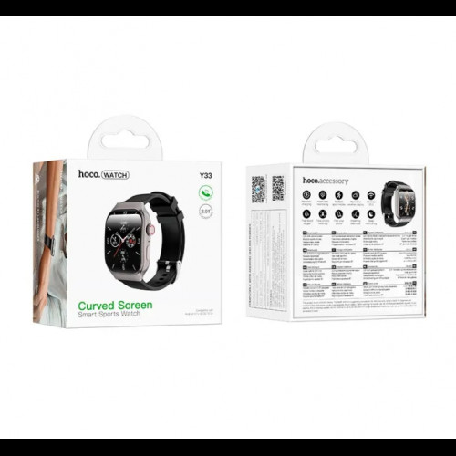 Hoco Y33 – это современные спортивные смарт-часы с большим 2.01-дюймовым изогнутым TFT-дисплеем, поддержкой звонков через Bluetooth 5.3 и широким набором функций для здоровья и удобства.Надежный и стильный аксессуар для тех, кто ценит комфорт и функциональность.Основные характеристикиДисплей:• Изогнутый TFT-экран• Диагональ: 2.01 дюйма• Разрешение: 240*296 пикселей Процессор: Zhongke AB5610 Память: 32MB ROM Bluetooth: Версия 5.3 с поддержкой звонков Аккумулятор:• Емкость: 200 мАч• Время работы: 3-5 дней Функции:• Мониторинг сна• Push-сообщение• Прогноз погоды в реальном времени• Поиск телефона• Отслеживание пульса и других показателей здоровья• Поддержка голосовых вызовов через BluetoothПоддержка языков: 21 языковой пакет, включая: Китайский, Английский, Русский, Арабский, Вьетнамский, Датский, Тайский, Польский, Персидский, Испанский, Малайский, Греческий, Французский, Итальянский, Немецкий, Португальский, Турский и по-украинскиHoco Y33 – это большой экран, поддержка звонков и полезные функции, которые делают эти часы популярными среди пользователей, желающих получить максимум возможностей в компактном устройстве.