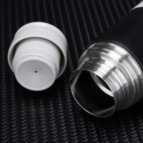 Между корпусом и колбой находится слой вакуума, благеодаря которому термос сохраняет температуру напитка.
