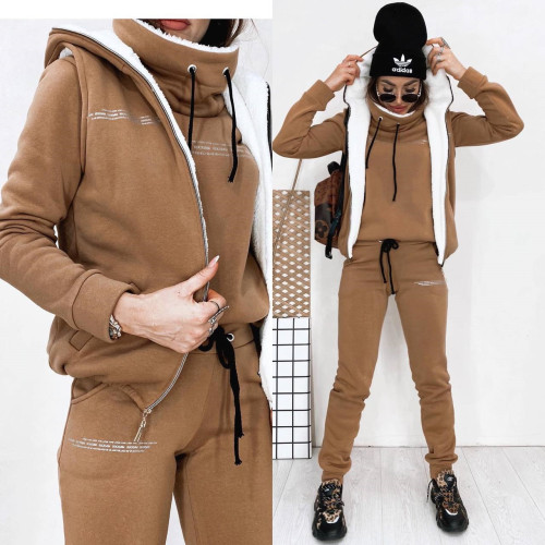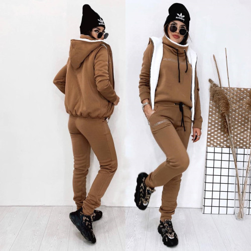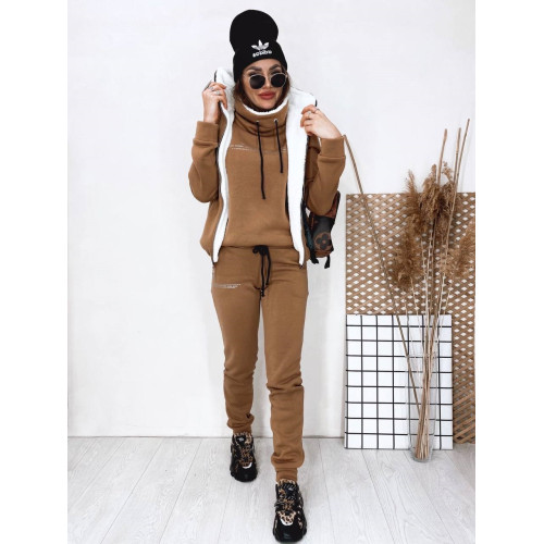 Теплый Костюм-тройка жилетка на меху+кофта+штаны бежевый