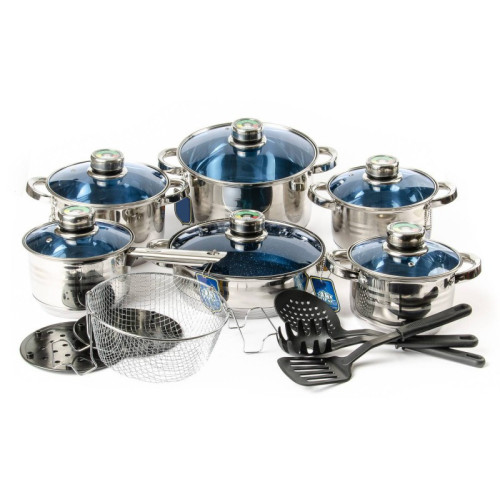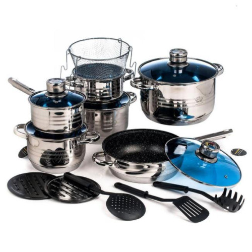 Набор посуды German Family GF-2054 из нержавеющей стали 18 предметов (кастрюли, ковш, сковородка, фритюрница)