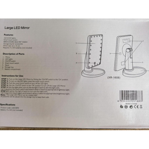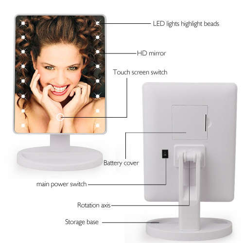 LED Зеркало с подсветкой для макияжа 20 cветодиодов предназначено для женщин, заботящихся о своей внешности, и помогает ухаживать за кожей и наносить макияж.