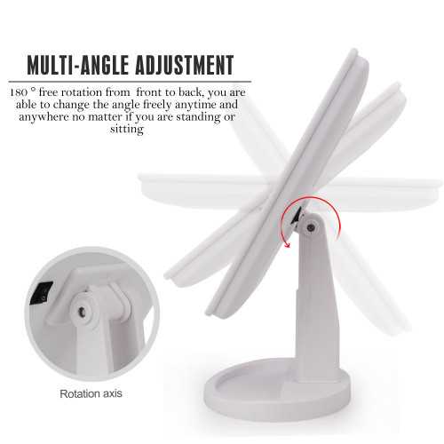 Угол наклона зеркала легко регулируется на 360 градусов, вы можете выбрать угол, при котором вам особенно удобно будет наносить макияж.