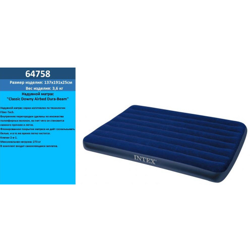 Надувные матрасы Intex Classic Downy - самая популярная серия, так как сочетают в себе умеренную цену и высокое качество!!!