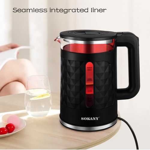 УЦЕНКА! Электрический чайник Sokany SK-1028 с подсветкой Черный(Плохая упаковка 3139)