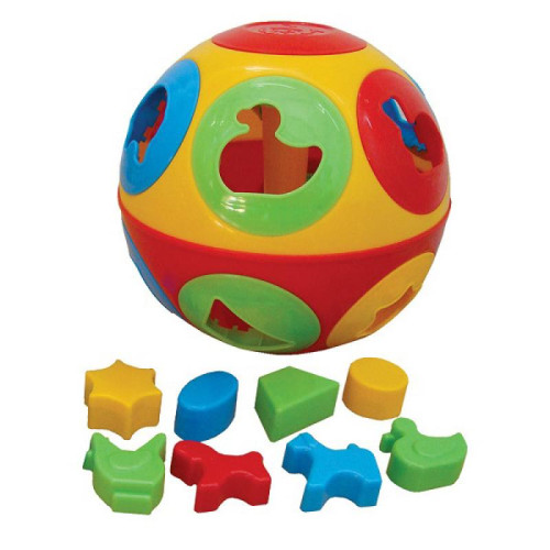 Формочки в игрушке сделаны в виде геометрических фигур и животных, каждая фигурка разного цвета.