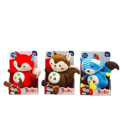 Игра музыкальная на батарейке, живтное, плюш, 33см, 3 вида, муз, звук, свет, в коробке