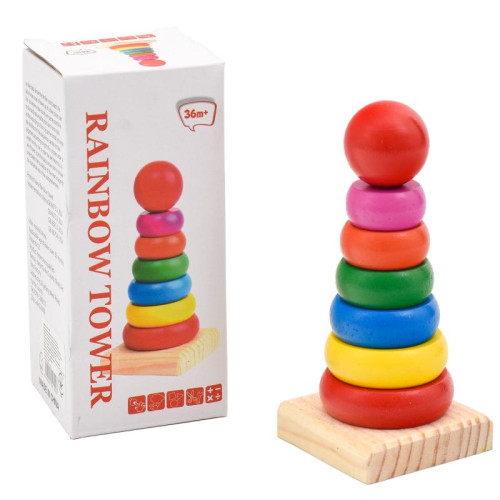 Прекрасная развивающая игрушка-пирамидка в оформлении из дерева привлекает ещё больше внимания! Приятная на ощупь, в яркой цветовой гамме - такая игрушка надолго удержит внимание малыша!