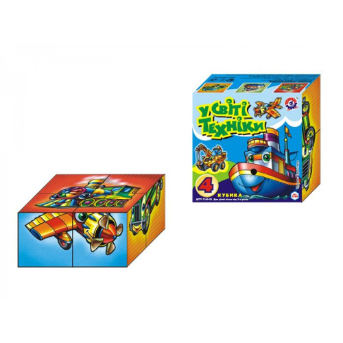 Кубики с картинками одни из наиболее эффективных развивающих игрушек. Кубики с картинками требуют минимального участия взрослых. Увлекательное занятие, развивающее и память и логическое мышление - это складывание кубиков. Малышу приятно собрать из частей желанную картинку! Набор из 4-х кубиков, на каждой грани фрагменты изображения техники, которую нужно сложить в один рисунок.