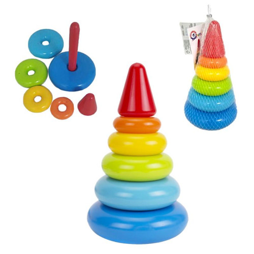 Элементы пирамиды гладкие, мягкие и приятные на ощупь - 6 ярких колец разной формы и размера. Они безопасны для малышей, поскольку не имеют острых краев. Игрушка изготовлена из качественных материалов и красителей, без запаха. Игры с пирамидкой очень полезны для детей. Они развивают мелкую моторику и координацию, знакомят детей с различными цветами и формами.