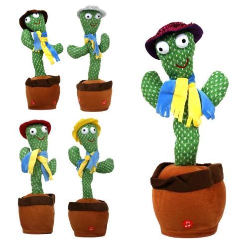 Танцующий кактус - новая музыкальная игрушка-хит Тик-Тока в 2021 году. Игрушка оформлена в виде разговаривающей куклы в форме кактуса, в горшке, с большими глазами и улыбающимся лицом. С первого взгляда, этот кактус вызывает положительные эмоции, а также улыбки на лицах. Плюшевый танцующий кактус станет развлечением не только для детей, но и для взрослых! Игрушка поёт 120 песен, танцует со светомузыкой и повторяет все звуки вокруг, что очень привлекает детей. Весёлые мелодии создают приятную атмосферу на любой детской вечеринке! Записывающее устройство в кактусе запишет любое Ваше предложение, которое Вы произнесете рядом с игрушкой, и через 1-2 секунды кактус повторит ваши слова очень смешным голосом и изящным танцем! Высота игрушки 34 см.