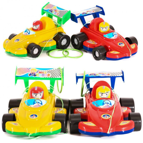Яркая пластиковая гоночная машинка.