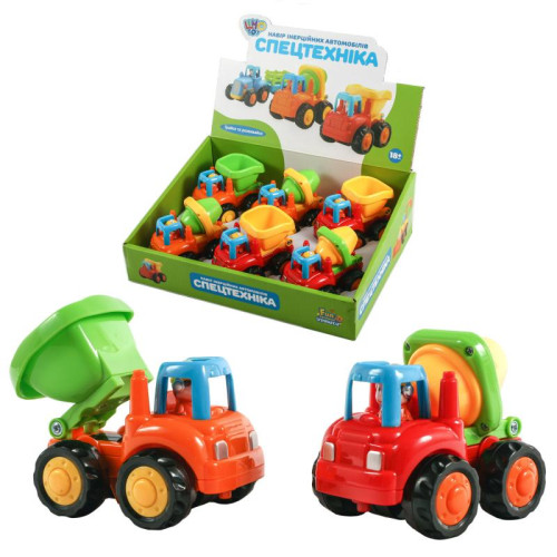 Выполненные в ярких цветах подвижные модели самосвала и бетономешалки не оставят равнодушным ни одного малыша!