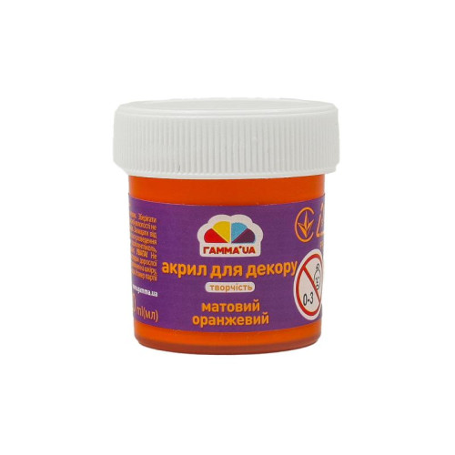 Матовая акриловая краска, оранжевая, 20 мл. Для рисования и занятий творчеством.