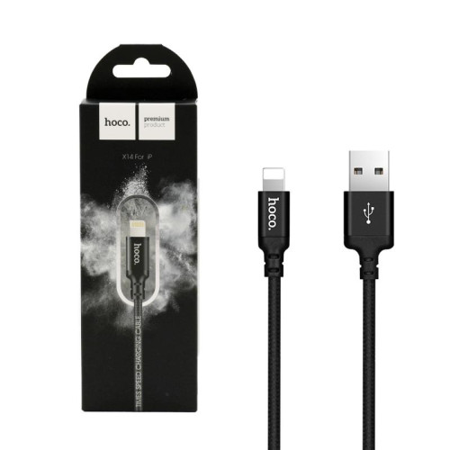 • Зарядний дата-кабель Hoco X14 USB-Lightning, 1м, Times speed, 2,0А, Чорний, 18233-1