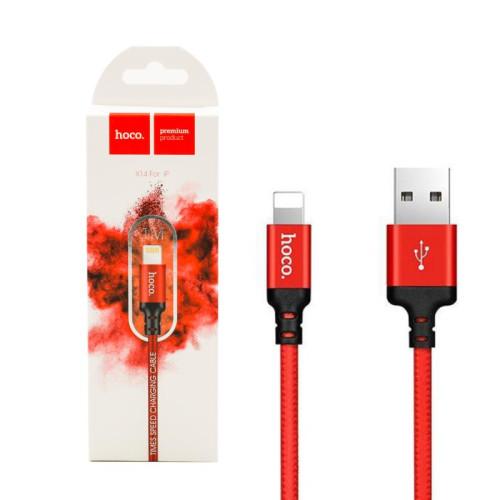 Зарядний дата-кабель Hoco X14 USB-Lightning, 1м, Times speed, 2,0А, Червоно-чорний, 18233