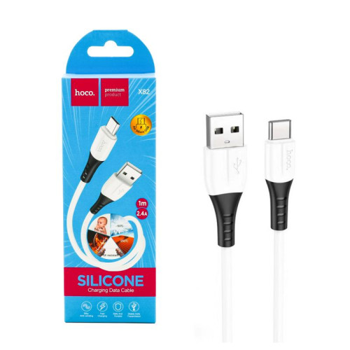 Кабель HOCO X82 USB на Micro-USB silicone charging data cable, 1м, 2,4А, Білий, 99177