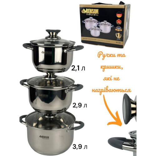 Набір кастрюль Benson, 6 предметів.