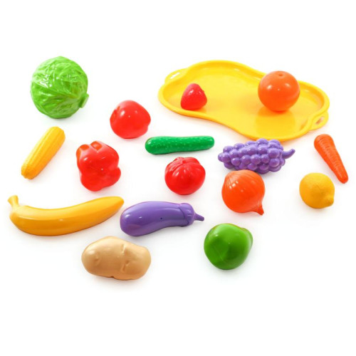 В набор входит 9 овощей: кукуруза, морковь, баклажан, помидор, огурец, капуста, картофель, лук и перец.