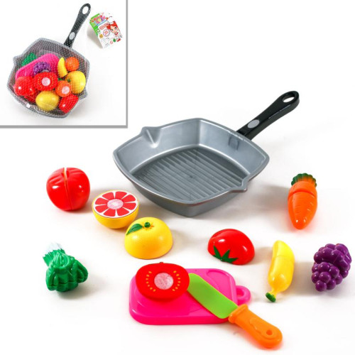 Замечательный подарок для маленькой хозяйки - такие продукты подойдут для игры в магазин или ресторан. Комплектация: сковородка, нож, досточка, продукты (на липучке)
