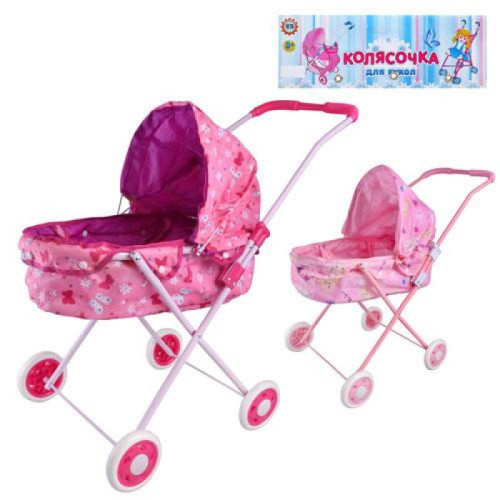 Коляска классическая, железная, с тентом, 2 цвета в ассортименте. Высота до ручки 67 см. С такой коляской будет удобно прогуляться с любимым пупсом или куклой.