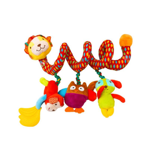 Подвеска на кроватку,33см,животные,спираль,прорезыв,плюш,на листе,в кульке