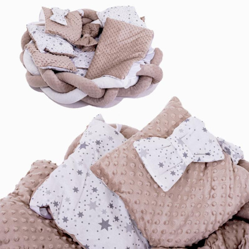 В наборе: матрас, одеялко, 4 подушечки, бампер для бортика. Комплект очень мягкий на ощупь, из плюша.