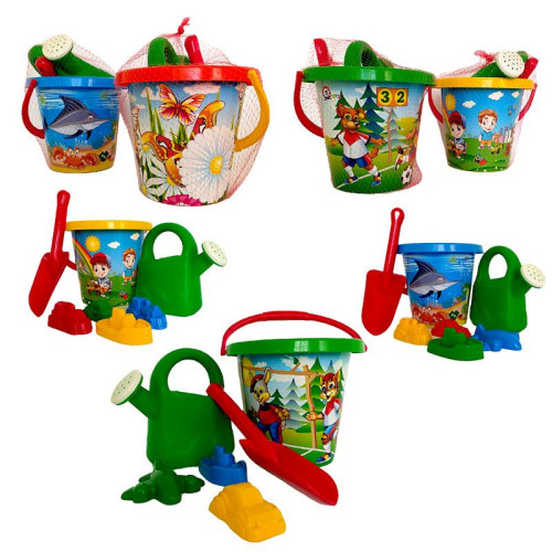 В комплекте: ведро, совок, воронка и 4 пасочки. Что нужно ребёнку что бы с удовольствием играть с песком? Правильно, песочный набор! Предлагаем Вам обратить внимание на этот комплект.