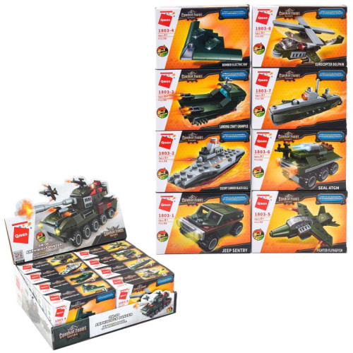 Разнообразные по цвету и форме блоки помогут Вашему ребёнку собрать модель военного транспорта.