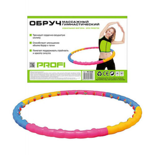 Хула-хуп из прочного легкого пластика. На внутренней поверхности расположено 30 массажных неопреновых шариков. Особенность модели – разборная конструкция из 6 секций.
