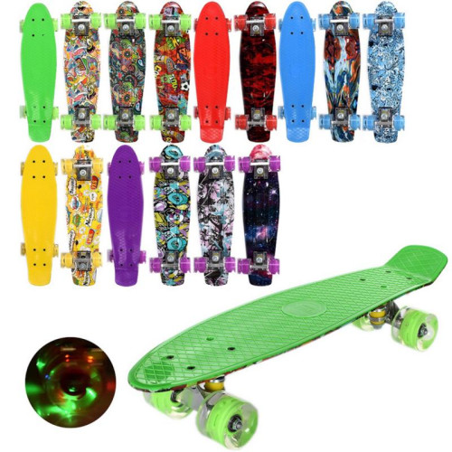 Скейт пенни, 56-14,5 см, пласт-антискольз, алюм. подвеска, ПУ-св, подш.608ZZ, разборной, микс видов
