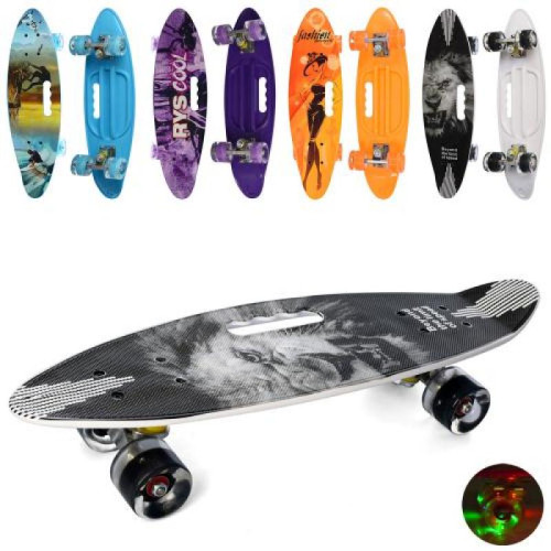Скейт 60-17 см , алюм, підвіска, ПУ, світло, ручка, антиковзні, MS 0461-7
