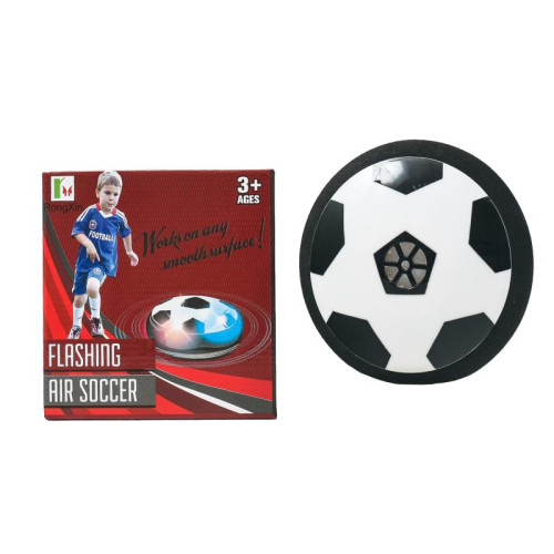 Аэромяч для домашнего футбола это замечательное решение для любимой игры в любом месте – на улице, в квартире, детском саду. Благодаря защитному бамперу, такие игры будут безопасны для окружающих. Аэромяч изготовлен из износоустойчивых, нетоксичных материалов: крепкого пластика и резины. Мяч светится разными цветами, а снизу работает встроенный вентилятор, воздух которго отталкивает игрушку от покрытия, и она скользит по гладкой поверхности. Такой необычный футбол поможет увлекательно провести время, потренировать ловкость, скорость реакции и координацию движений. Диаметр мяча 11 см