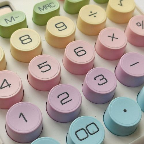 Этот калькулятор имеет уникальный дизайн в стиле пишущей машинки, четкий звук и специальные цвета, которые обязательно привлекут внимание. Простые линии и большие круглые кнопки в стиле ретро обеспечивают удобное прикосновение, упрощая любые вычисления.